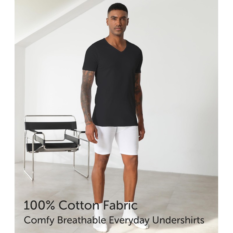 Comfneat Men's 6-Pack Undershirts 100% Cotton Comfy V-Neck T-Shirts (Black+Grey Melange 6-Pack, XXL)