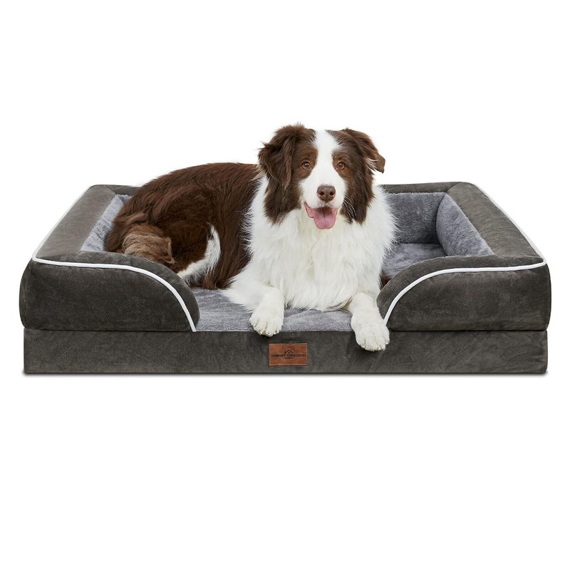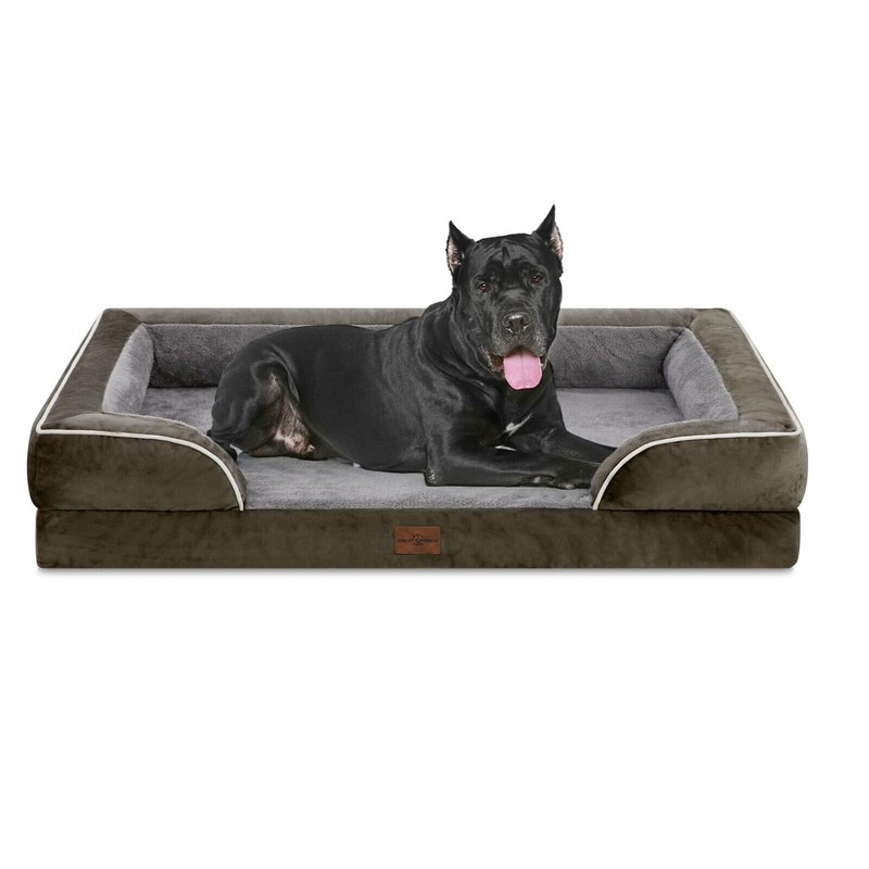 SOFA DOG BED DESIGN: This pet bed large is wrapped with four handrails,The fence-like design makes the dog feels more secure lying in it.And 4 inch side pillow provide extra support for your pet's neck and head, can be relaxed and soothed,so that the pets can rest better in the dog beds.