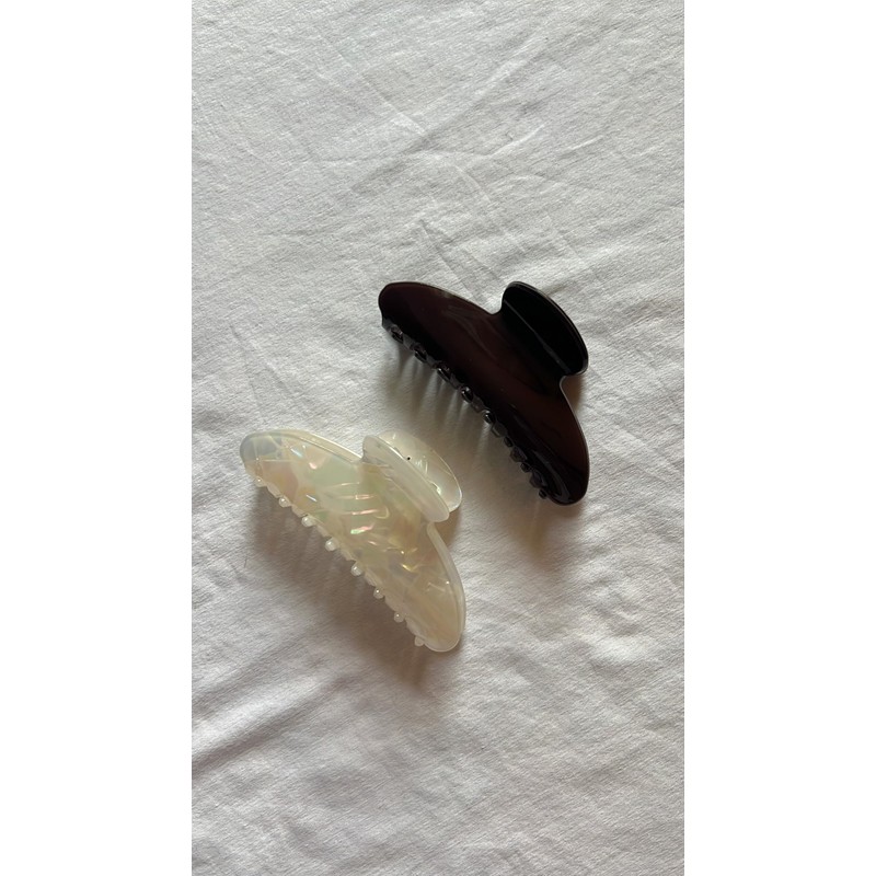 - 【Set of Two for Versatile Styling】 - This set includes two large claw clips, one in a classic dark brown/black finish and the other in a pearl white, iridescent design. Perfect for adding variety to your everyday hairstyles or dressing up for special occasions.