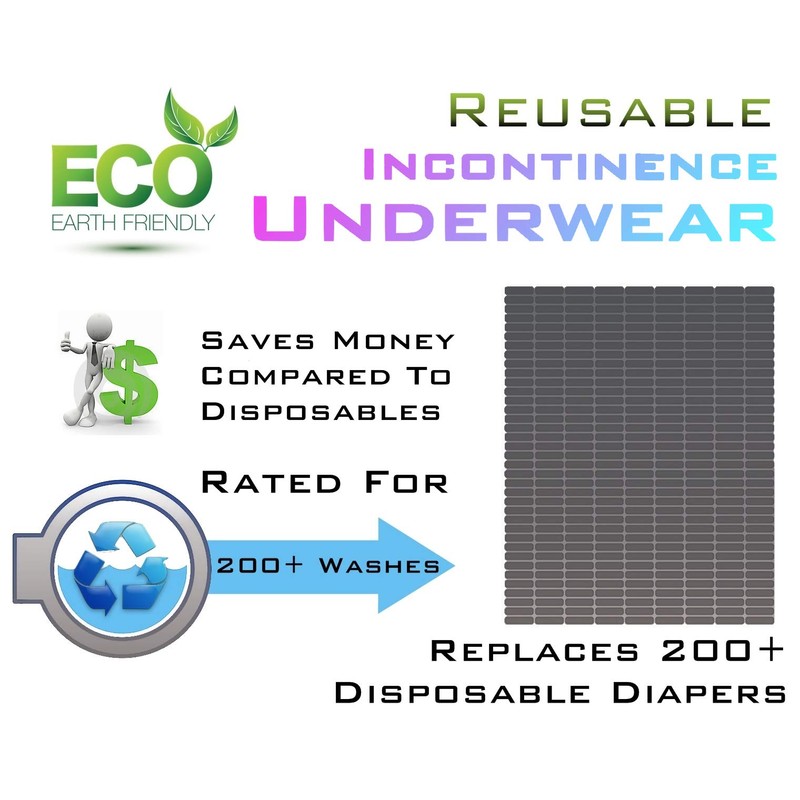 - PAYS FOR ITSELF OVER TIME- Cheaper and more economical than disposable briefs. Nothing additional to purchase. No Pads. All protection is built into the underwear.