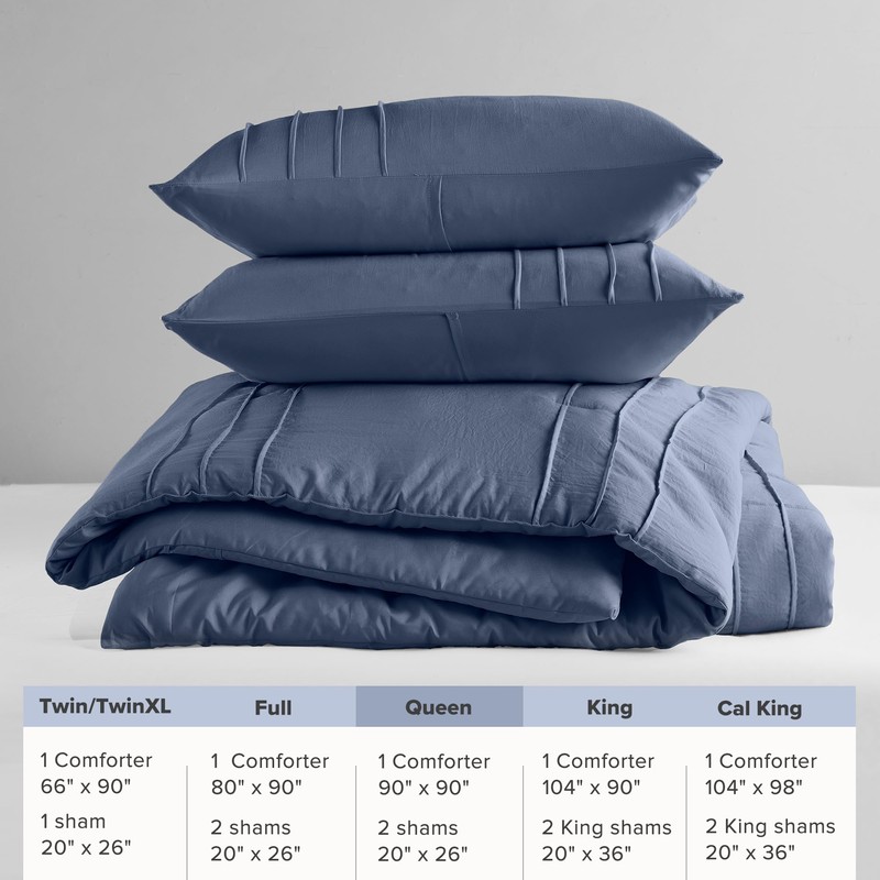Comfort Spaces Navy Queen Comforter Set - 3 Piece Pintuck Pleated Bedding Set, All Season Lightweight, Extra Softness Pre-Washed Microfiber Bed Set, Shams