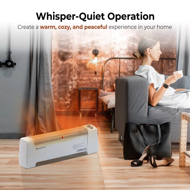 - The electric baseboard heater operates silently, ensuring that you can enjoy your activities without any distracting background noise.