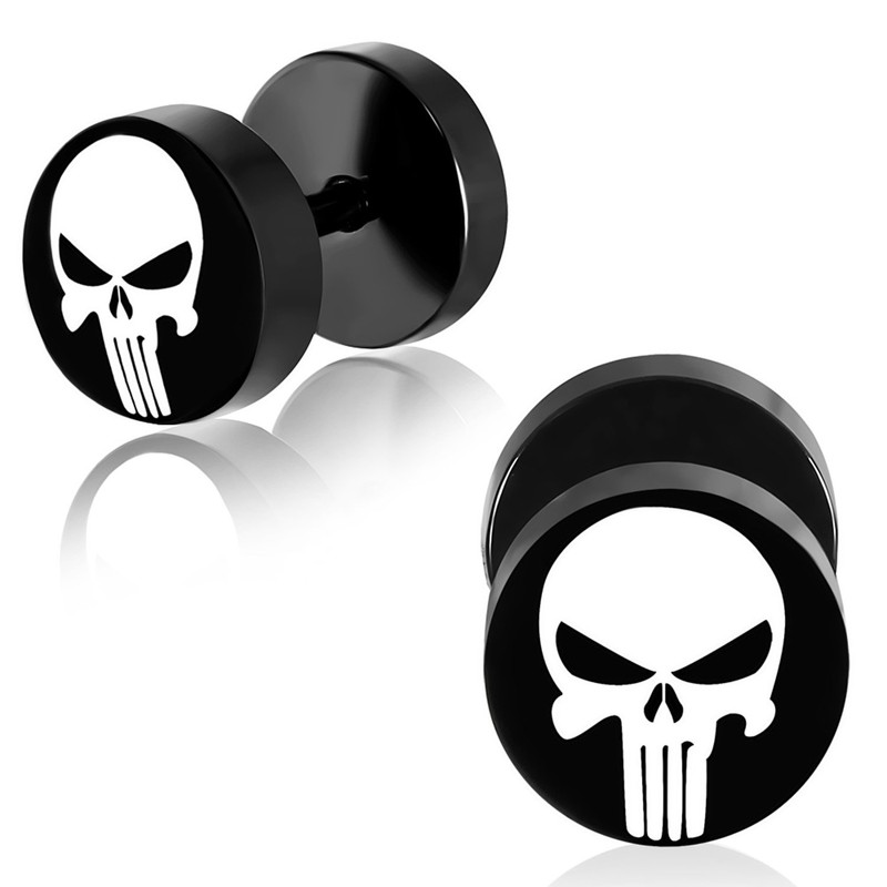 Comfort Zone Studios 8 MM (0g) Black Stainless Steel Two-Tone Punisher Skull Faux Fake Cheater Ear Plugs Gauge, Pair
