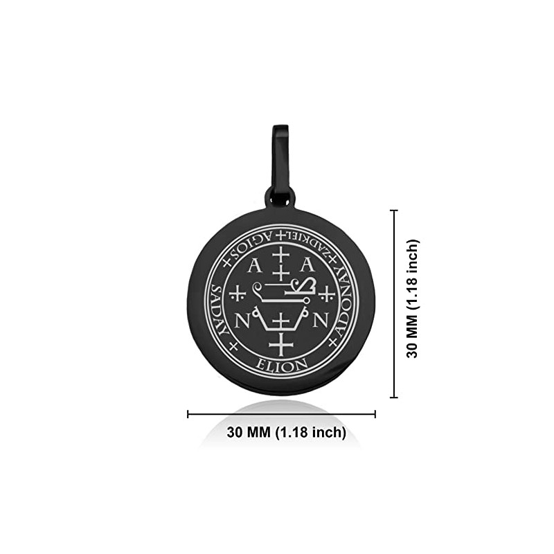 Comfort Zone Studios Stainless Steel Seal of Archangel Zadkiel Round Medallion Pendant Necklace, Black