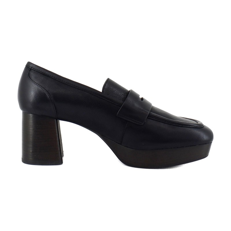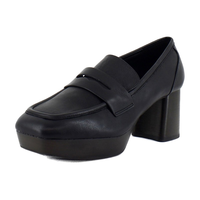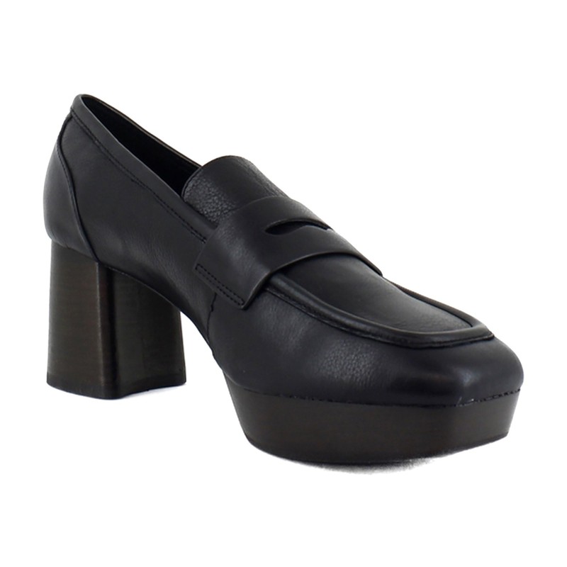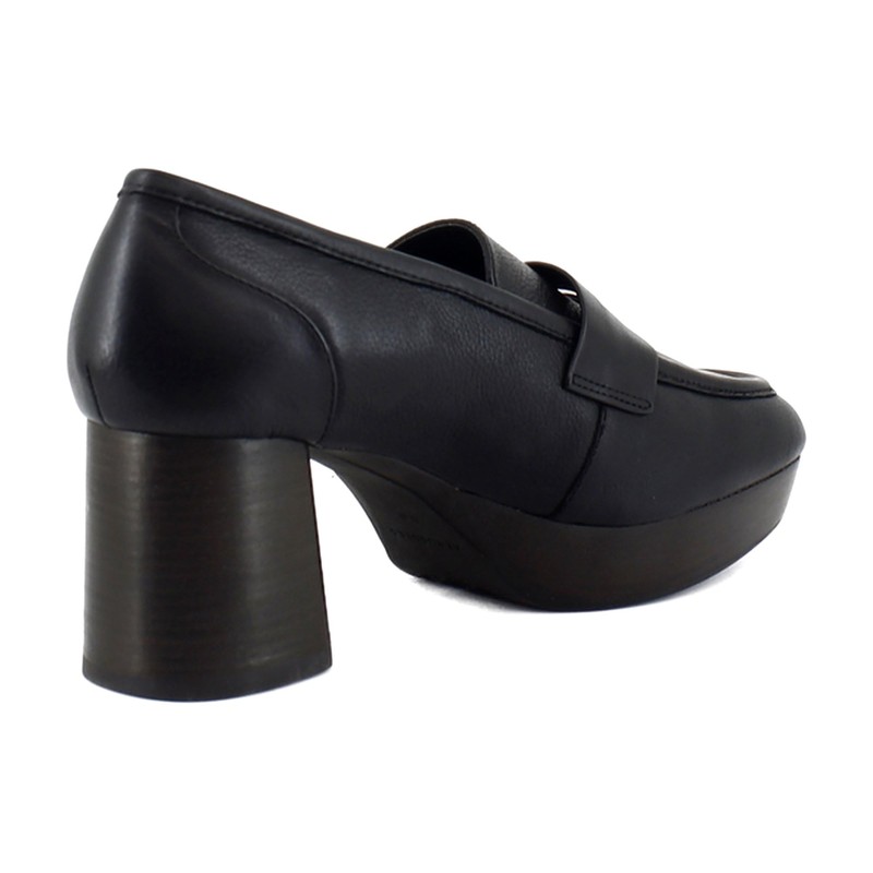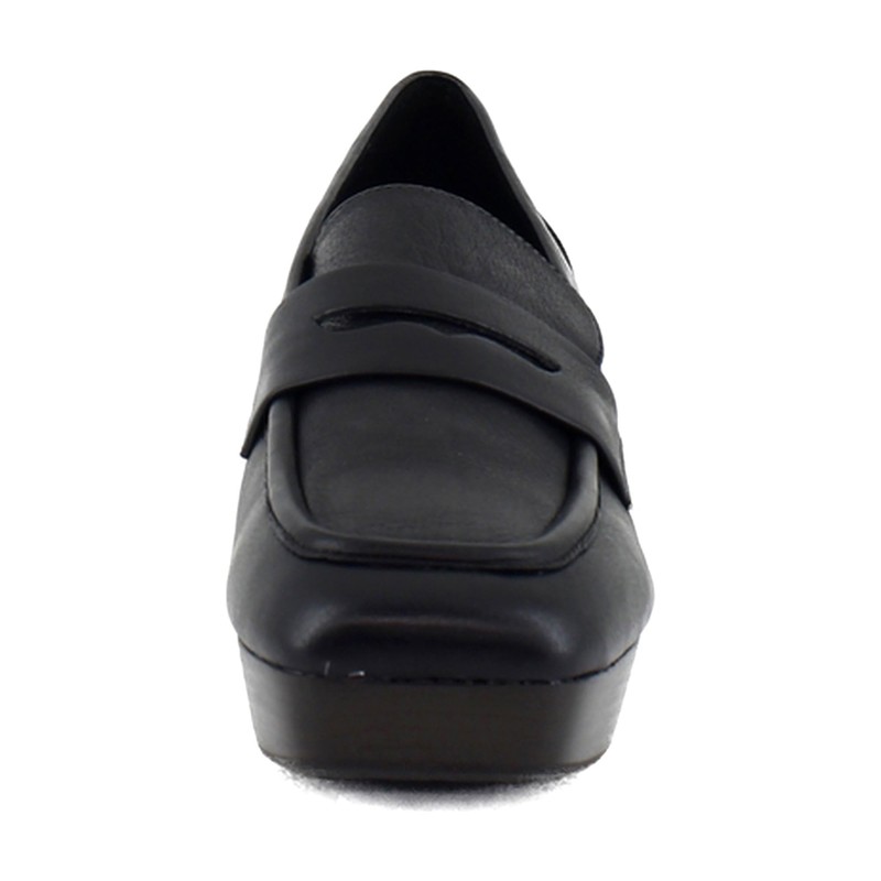 Comfortable Women's Tailored Platform Loafer in Black Leather Leather