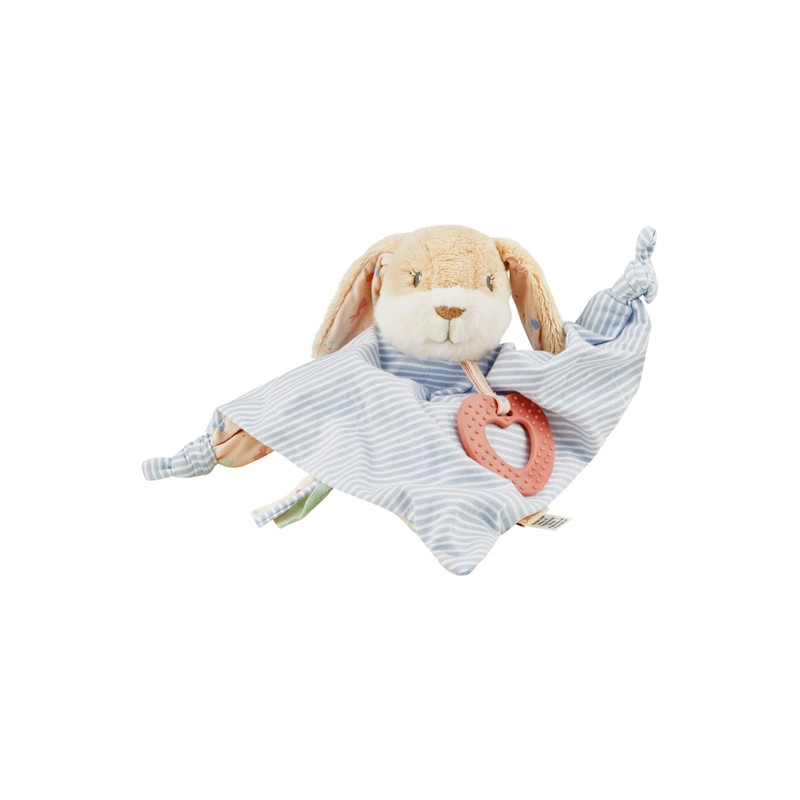- Comforter M rabbit Hanni /// made of cuddly fleece /// filled with soft polyester wadding /// cloth made of striped lightweight jersey /// knot on two ends and teething ring in heart shape to discover