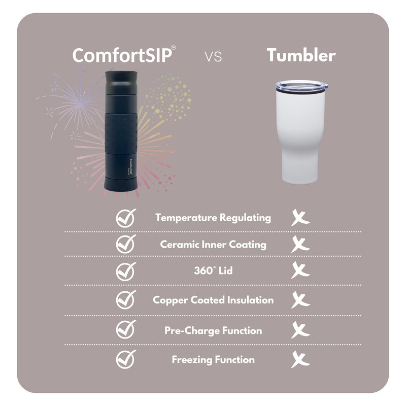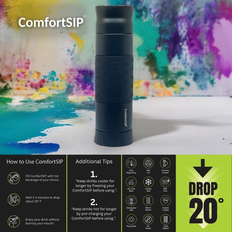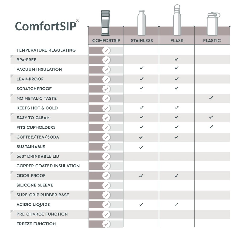 - ENJOY YOUR COFFEE AT ITS BEST. ComfortSIP takes your coffee experience to the next level. Our innovative Three-Walled Vacuum Insulation Technology drops your coffee to the perfect drinking temperature fast and keeps it there for over 4 hours. No waiting, no guesswork—just smooth, enjoyable sips whenever you’re ready.
