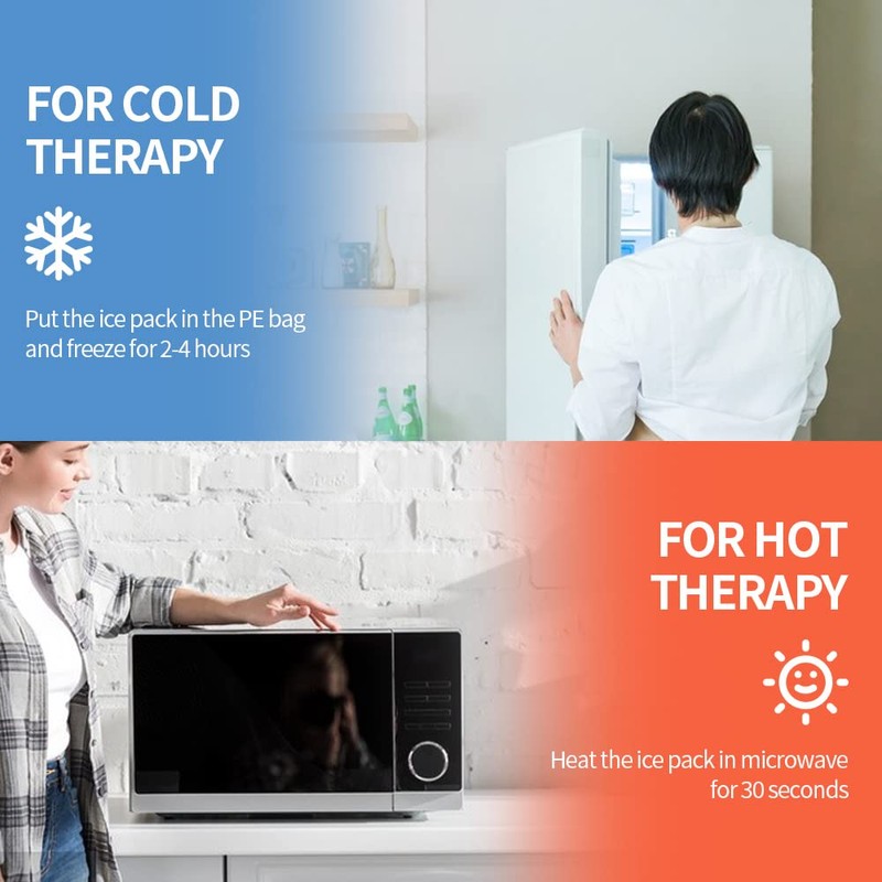 - Hot or Cold Therapy - Comfpack heel ice pack can be used for both hot and cold therapy. Cooling the ice pack in freezer for 2 hours for cold compress or heat it in the microwave for 30 seconds for hot compress.