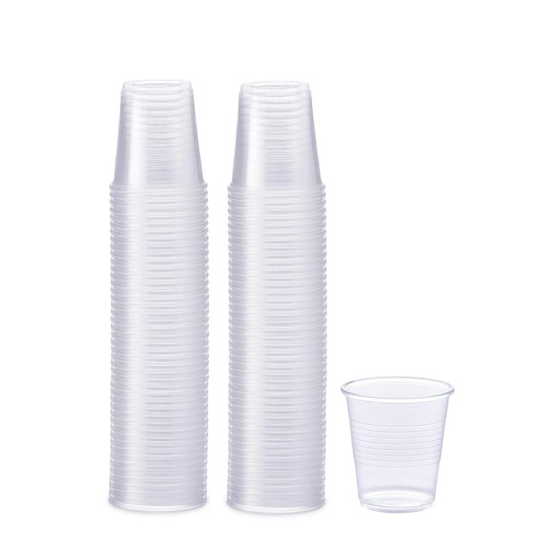 - Ample Quantity and Convenient Size: Each package includes 100 clear disposable plastic cups with a 3 oz. capacity, ensuring you have plenty for frequent use in bathrooms, medical settings, or any place where small quantities of liquids are needed. These small cups are perfect for mouthwash, rinsing, taking medication, or serving small portions of beverages.