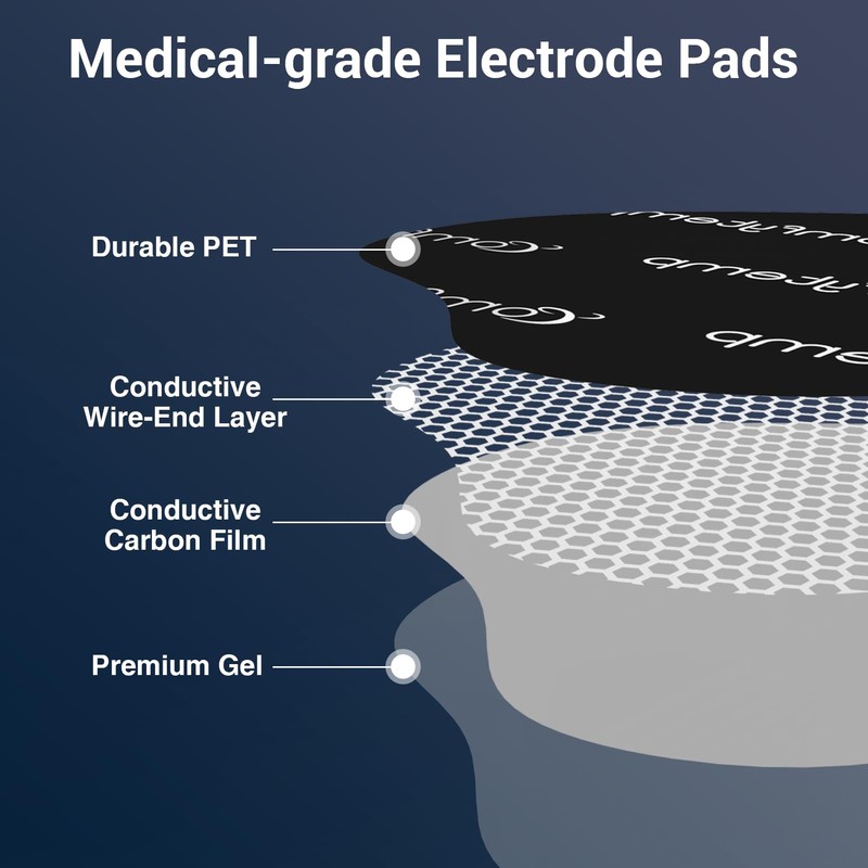 - Excellent Adhesive Reusable Electrodes: The tens pads are made with upgraded industry-leading adhesive which provides excellent self-stick performance and is easy to clean.