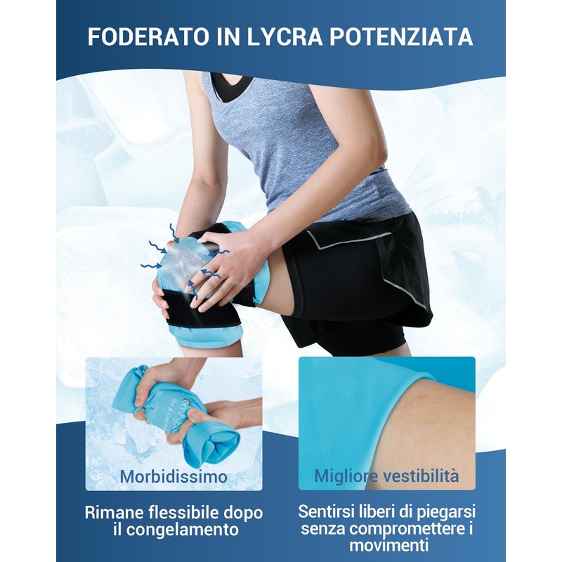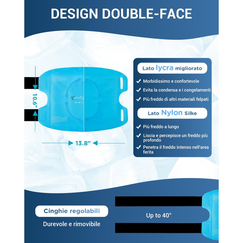 - Gel Knee Ice Bag: The size of the Comfytemp knee ice bag is 35 cm x 27 cm, designed for the knee area that targets the front and back of the knee. Gel ice pack. Keep it cooler for longer with more gel filling. It provides safe and effective relief of your sprains and strains, meniscus tears, ACL, arthritis and joints, sports injuries, knee surgery.
