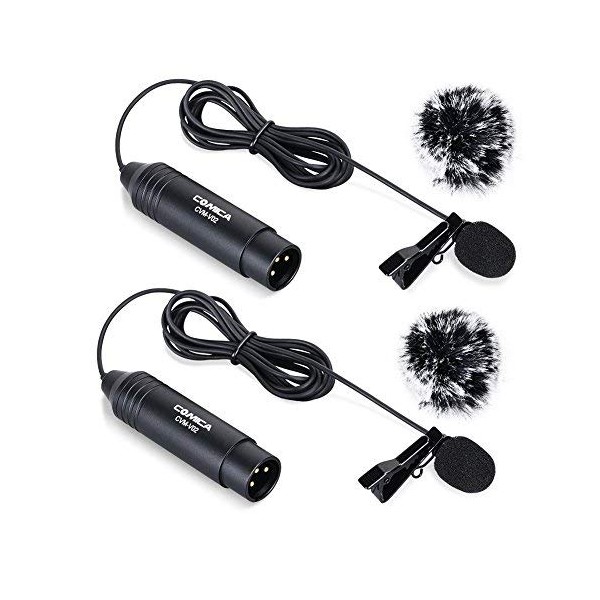 comica Omnidirektional Lavalier Mikrofon, CVM-V02O Ansteckmikrofon Unterstützt 48V-Phantomspeisung, 4.5M(14.7ft) 3-poliger XLR Mikrofon für Canon/Nikon/Sony/DSLR Kamera/Camcorder/Audiomixer(2Piece)