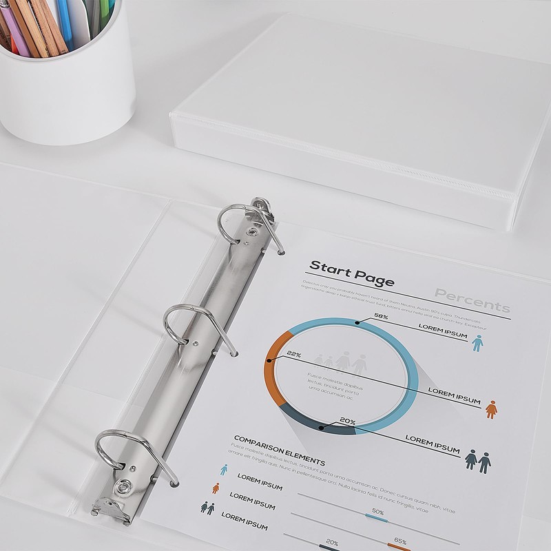 Binder Cover with 3 Pockets - Each Binder has 3 clear pockets in both cover sides (front/back/side) allows for fuss-free insertion of your favorite papers, and make it easy to keep a summary, table of contents, quick-facts or handouts within easy reach
