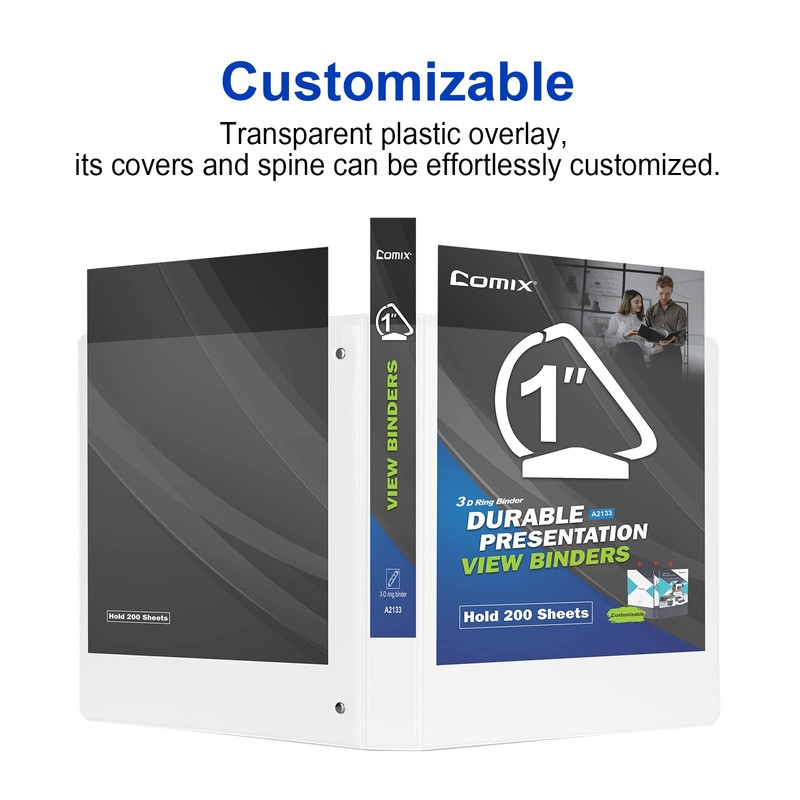 • Comix 1‘’ 3-ring binder with 1-inch D-shaped rings can hold up to 225 sheets of paper, 12 Pack, White Color