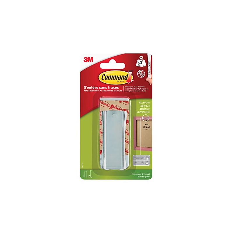 Make decorating quick and easy with Command Universal Sticky Nail. This single piece hanger is simple to use, and replaces the need for nails when hanging pictures and other objects. Use for frames and items weighing up to 2.2 kg without damaging the wall. Sticky nail holds strongly to a variety of surfaces including solid, hollow and painted walls and is easily removed without damaging the surface underneath no holes, damaged paintwork or sticky residue. Self-adhesive sticky nails are ideal for experimenting with wall displays. If one wants to rearrange, the wall will be left exactly the way it was.