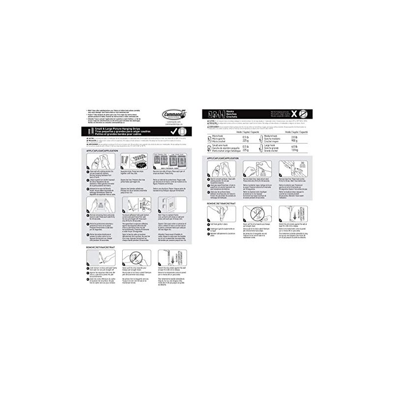 - INCLUDES - 4 small Picture Hanging Strips, 4 large Picture Hanging Strips, 3 clear medium hooks, 1 clear large hook, 7 clear micro hooks, 4 clear small wire hooks, 22 clear strips; Hangs up to 15 items and reclosable case is great for storage and is easy to refill