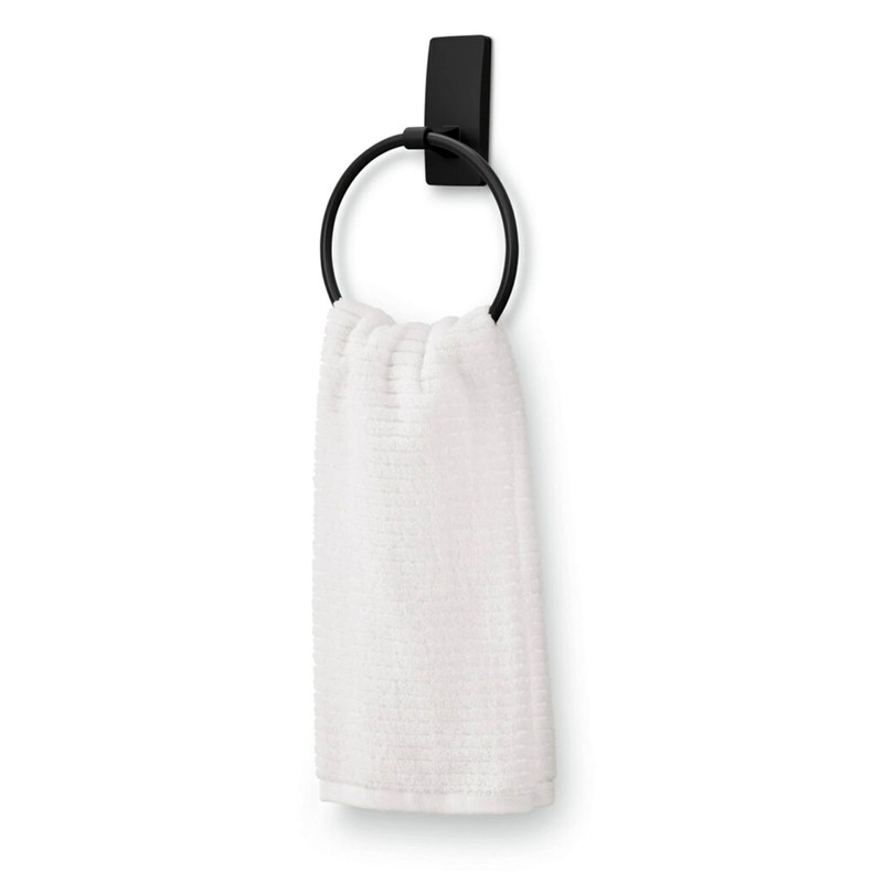 The Command Towel Ring makes it easy to refresh your bathroom fixtures and keep your hand towels within reach without cluttering your counter space. It is easy to install and comes off leaving no holes or sticky residue, providing a great alternative to damaging nails and screws. The towel ring sticks to many surfaces, including glass, mirror, tile, finished wood and painted surfaces.