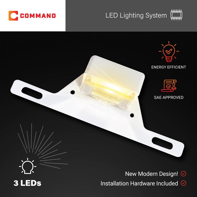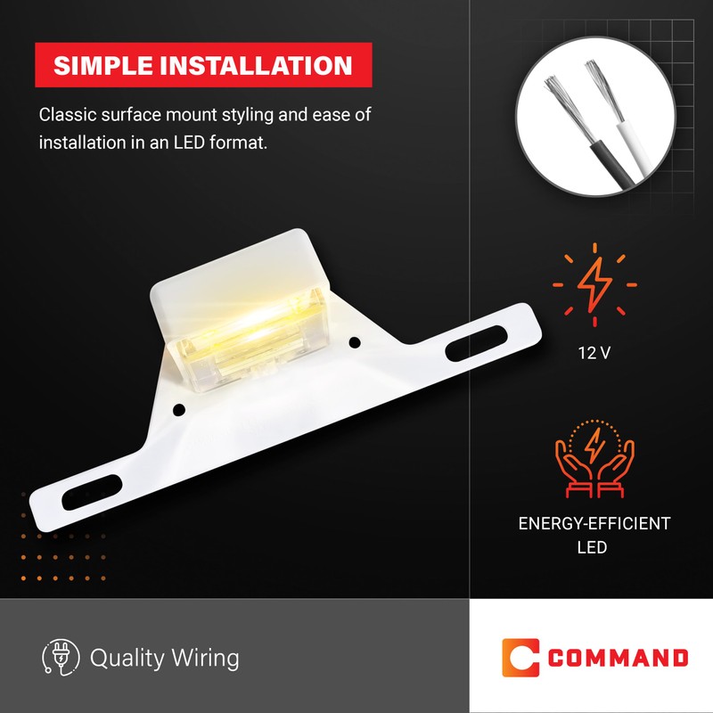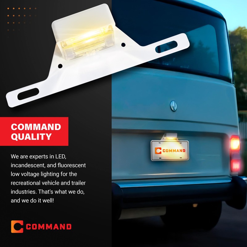 Command Electronics 12V LED License Plate Light with Mounting Bracket – Modern OEM RV, Truck, & Trailer Surface Mount Light – CSA Certified for The US and Canada – Clear Lens – White Frame