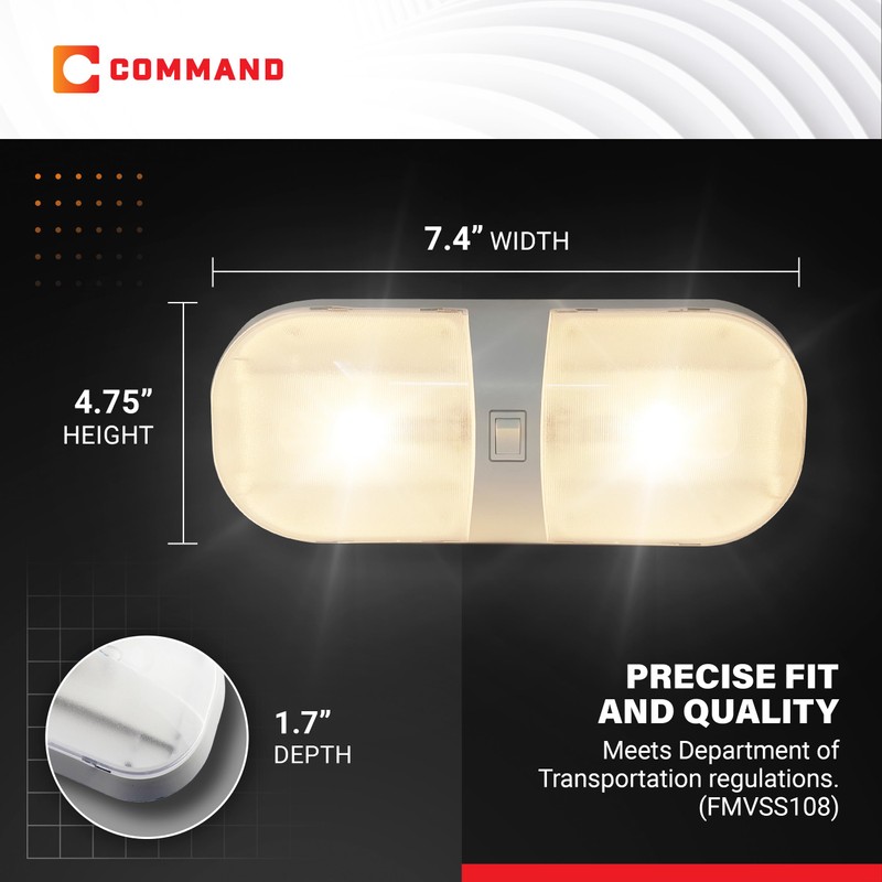 Command Electronics OEM 12V Incandescent RV Double Interior Dome Light with R...