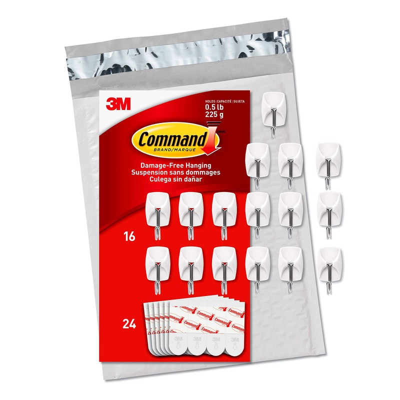 - INCLUDES - 16 hooks and 24 small indoor strips; 1 hook holds 1/2 lb