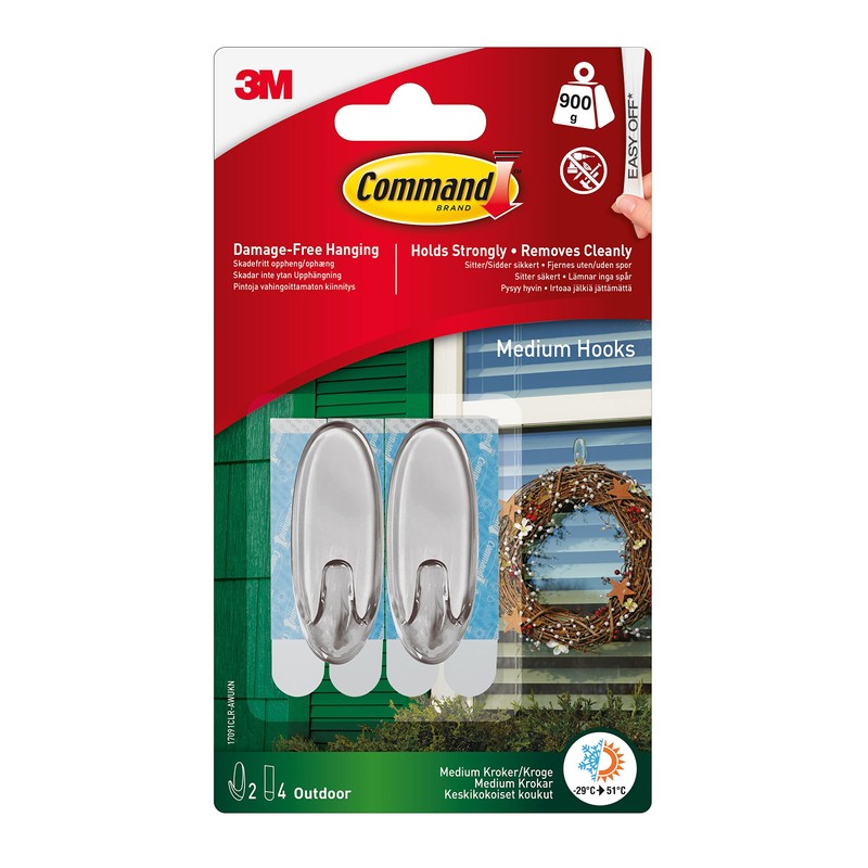 - Pack contents: 2 hooks and 4 medium outdoor strips