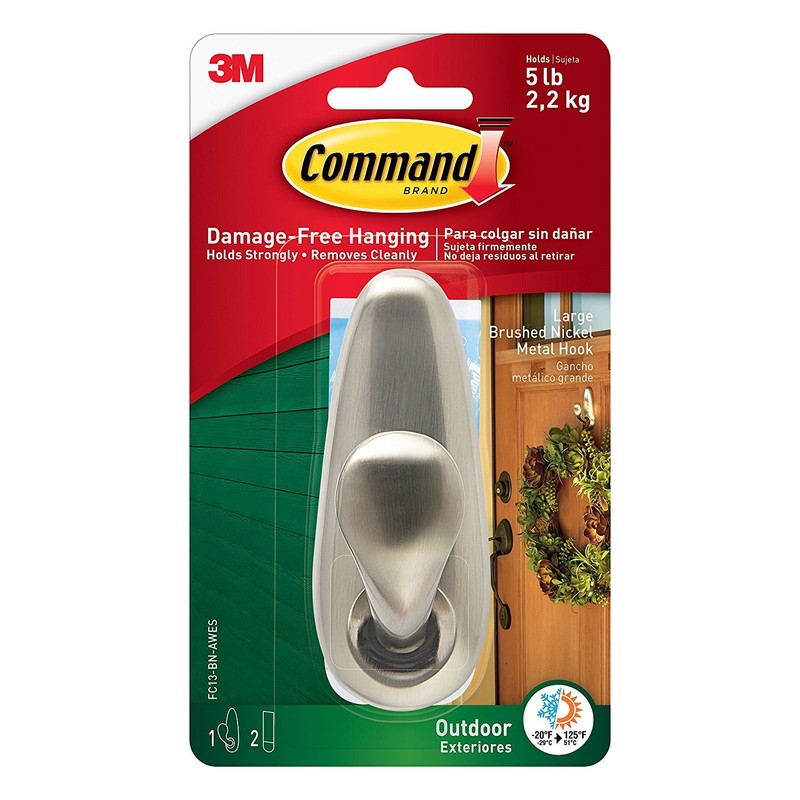 Command Outdoor Hooks give you the freedom to decorate the outside of your home for every season, holiday or event. They are perfect for hanging wreaths, signs, thermometers, artwork, or other decorations on a variety of smooth outdoor surfaces, such as doors, siding, or trim. Using a new formulation of the revolutionary Command Adhesive, these Outdoor Hooks can handle temperature extremes from 20 degrees F to 125 degrees F! And like all Command Products, they remove leaving no holes, marks, stains or sticky residue so you can use them over and over again.