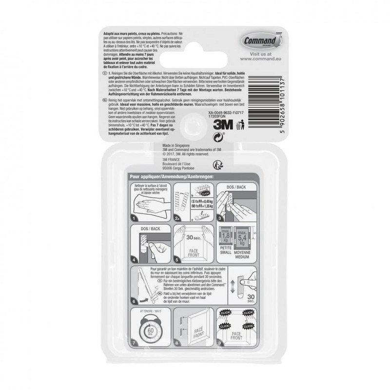 - Load capacity: 4 sets of small strips S can hold a frame weighing up to 1.8 kg and a size of up to 20 cm x 25 cm. 4 pairs of medium strips M can hold a frame weighing up to 5.4 kg and a size of up to 45 cm x 60 cm