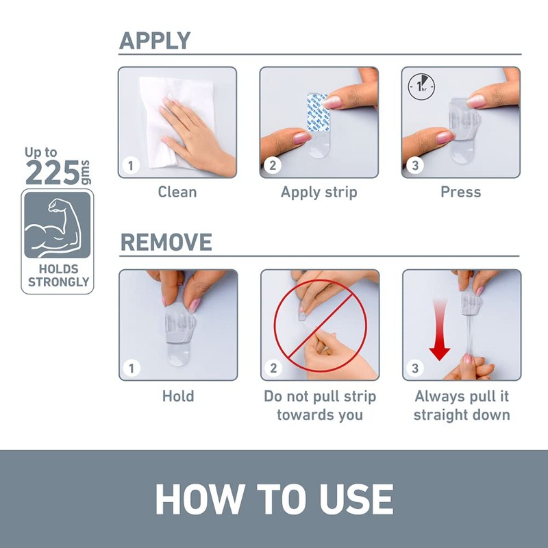 • Damage-Free Hanging^Clear clips, clear strips^Holds strongly^Removes cleanly