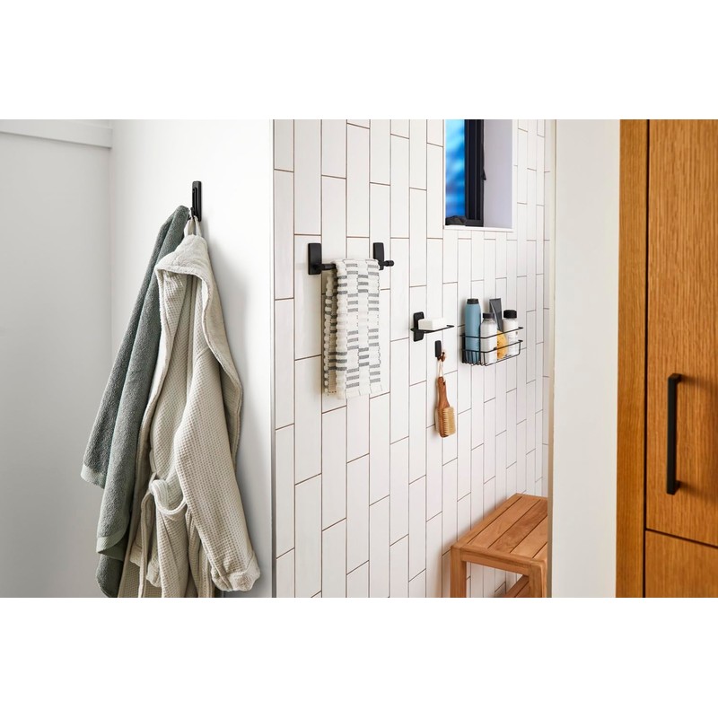 - No tools required - Equipped with a matte black, rust-resistant surface with water-resistant adhesive strips that are proven to hold strong even when wet; no holes, no drilling and no hassle
