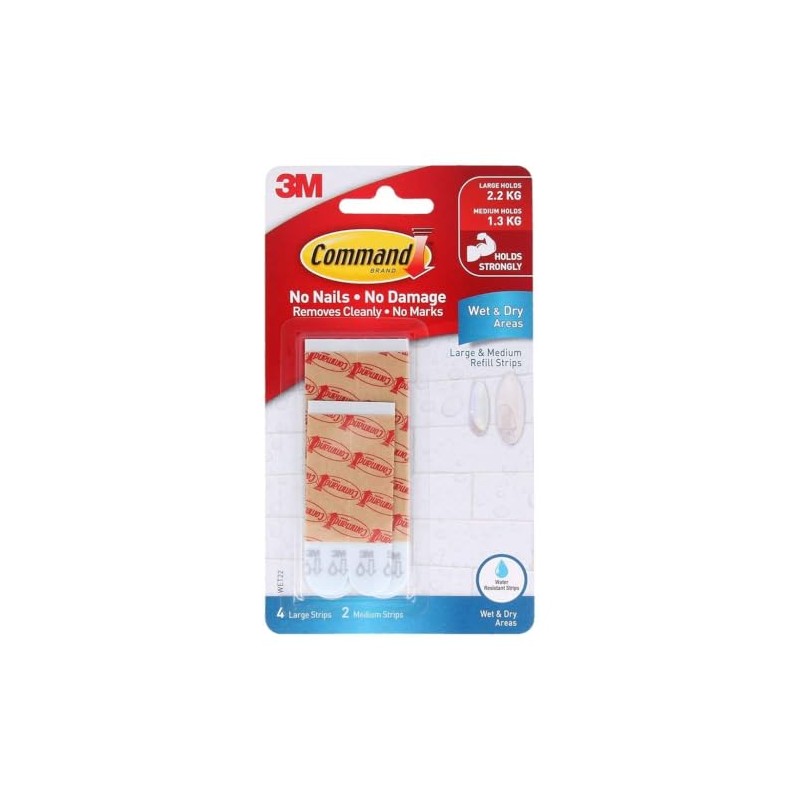 Command Wet Area Strip 6-Pieces, Medium/Large