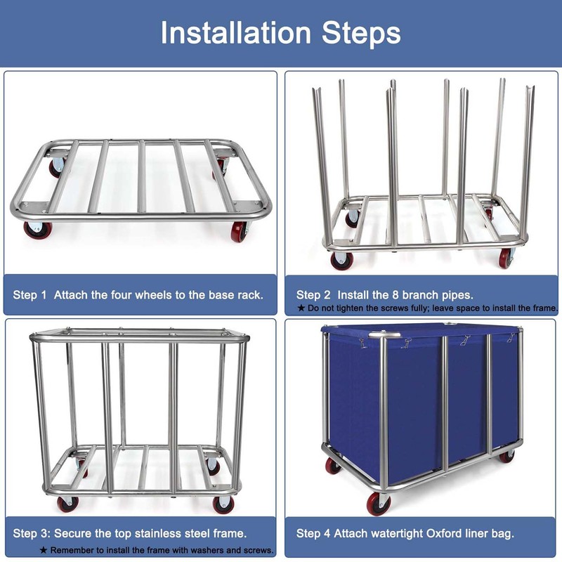 - Detachable Laundry Liner Bags: This industrial laundry sorter features a removable watertight Oxford cloth liner that is strong, durable, watertight, and moisture-proof. The liner can be easily replaced when needed and is firmly secured to the frame with 10 sturdy hooks, ensuring stability and convenience.