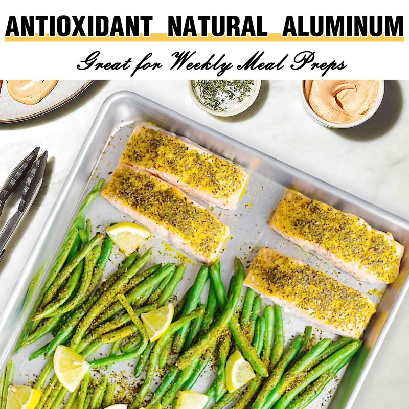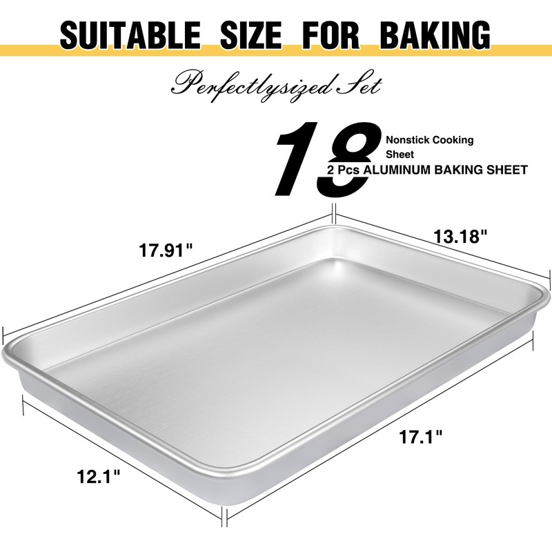 Commercial Quality Baking Sheet Pan Set, Natural Aluminum Cookie Sheet, Umite Chef Warp Resistant Nonstick Baker's Half Sheet Pan, Large Thick Cookie Tray Pans for Baking, Roasting(2 Pack, 18X13In)