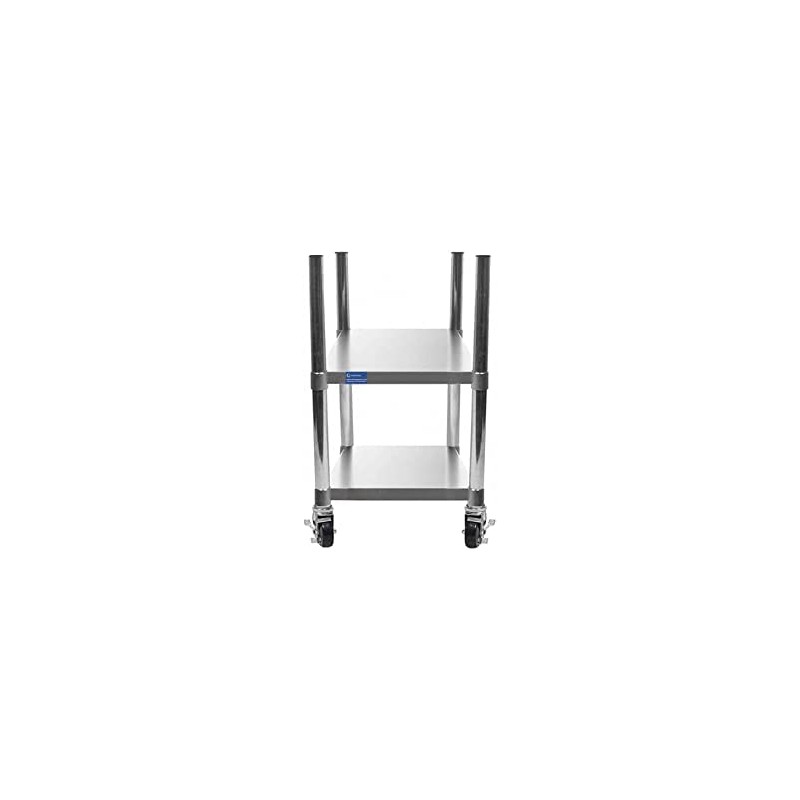 Heavy duty stainless steel equipment stand for a large capacity rice warmer or rice cooker. Great design for table service, multiple uses in restaurants, hospitals, hotels, school, and labs Commercial Restaurant Stainless Steel Rice Warmer Stand with Swivel Caster and 2 total lock brakes, perfect for large capacity rice warmer or rice cooker. Heavy-duty commercial wheels with brakes allow you to safely park the cart where you want it to stay wheel brake and secures the swivel head, preventing all caster movement. This creates a more solid foundation for equipment, carts and tables. Fits Most Rice Warmer / Rice Cooker and Sushi Rice Warmer. Both shelves are adjustable. Shipped knock-down. Easy to assemble and clean