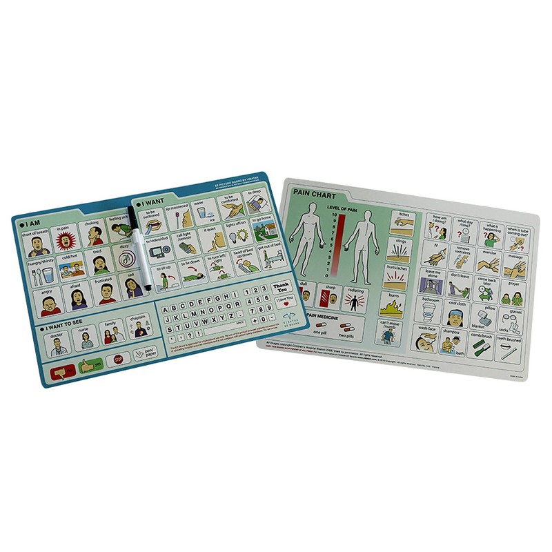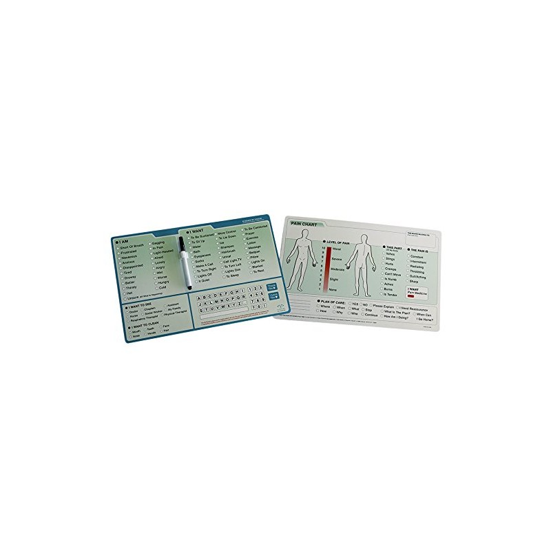 The boards provide clear options to both patient and care-giver, allowing for effective communications for patients with difficulty speaking or using traditional communications.