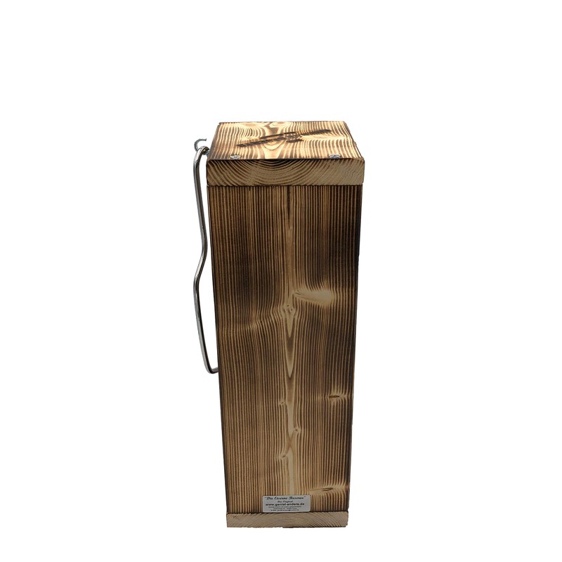 • Use the included Allen key to loosen the screws on the wooden lid - insert bottle, sweets or gift - screw the wooden lid