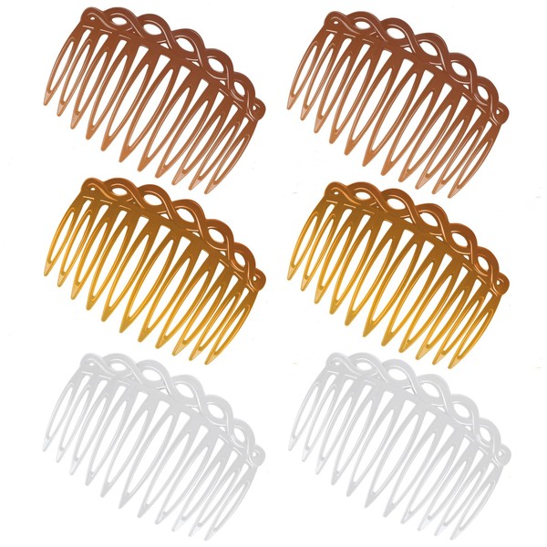 COMNICO French Side Combs 6 Pieces Hair Comb Clip Plastic Hair Side Combs Set Teeth Side Parting Comb Hair Comb Accessories Set (Transparent/Dark Brown/Light Brown)