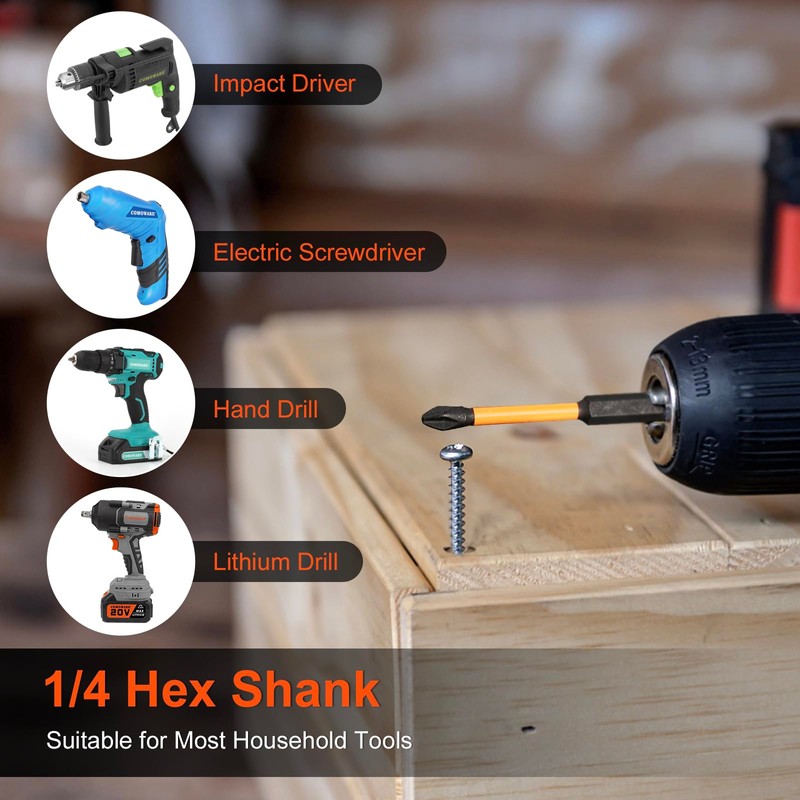 • Compatible with General Tools: The 1/4" hex handle is compatible with electric screwdrivers, hand screwdrivers, electric drills, and general-purpose tools, providing versatility for all your needs.