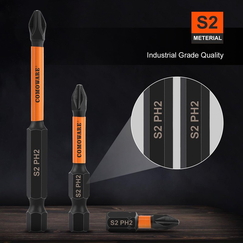 • Premium Materials: Our impact Phillips bits are crafted from industrial-grade S2 alloy steel, ensuring exceptional strength and durability. The black phosphate coating offers superior corrosion resistance.