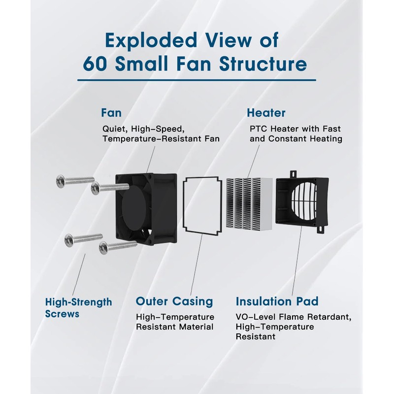 • Quick and Efficient Heating:Experience fast heat-up times with this PTC air heater. It converts electrical energy into heat within 30 seconds, delivering efficient and immediate warmth