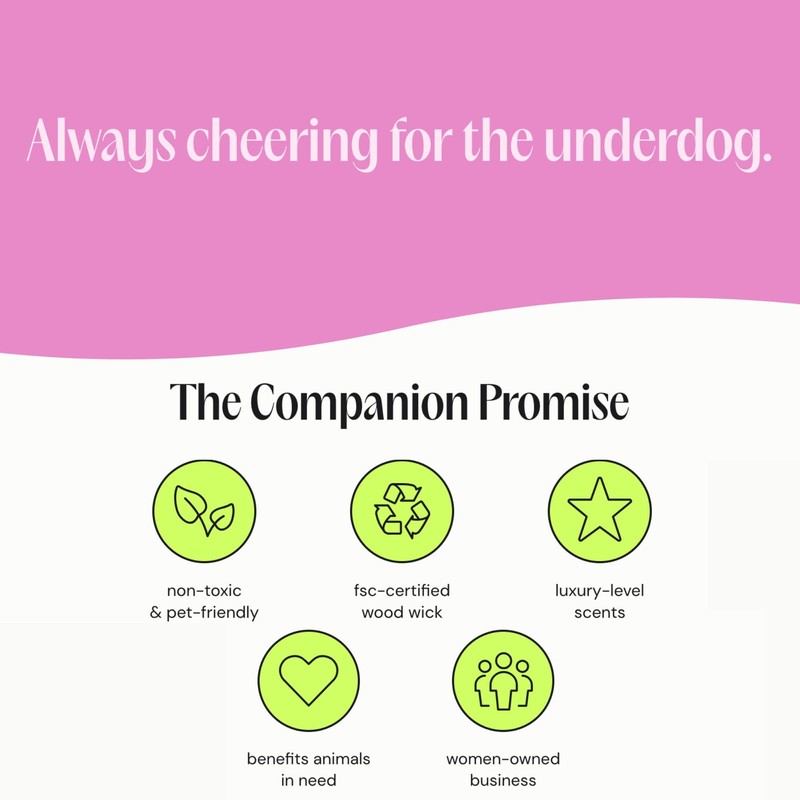 - Pet-Friendly - Companion Candles are free of paraffins, phthalates, and preservatives. Non-toxic. No additives. No dyes. Our wooden wicks are eco-friendly, clean-burning wicks made from FSC Certified Wood.