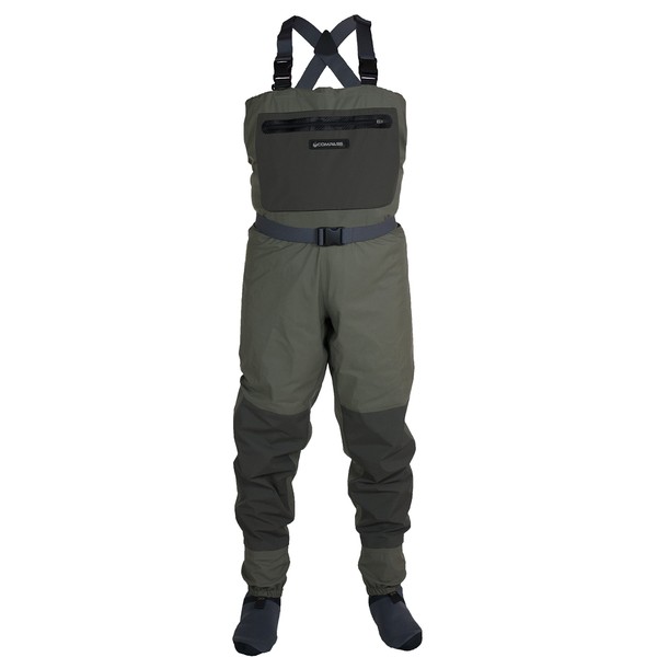 - EXTRAS – Zippered front chest pocket. Flip-out storage pocket inside of the wader. Equipped with belt loops and durable wading belt with quick release buckle. Built with an adjustable chest drawcord and fully adjustable elastic suspenders.