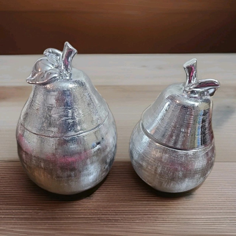 - Includes small and large pear jars, each with removable lid