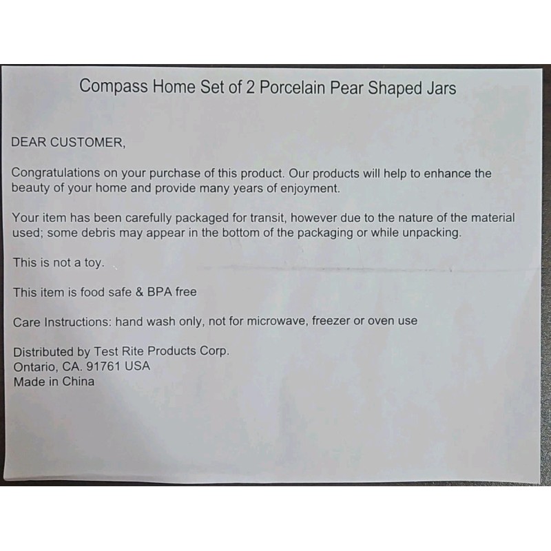 Compass Home Set of 2 Porcelain Pear Shaped Jars/Canisters Small (7") & (8")