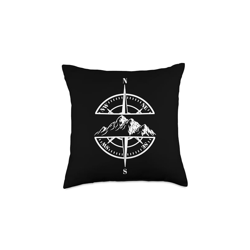 Compass Rose Mountain Scene Hiking Backpacking Nature Lover Throw Pillow