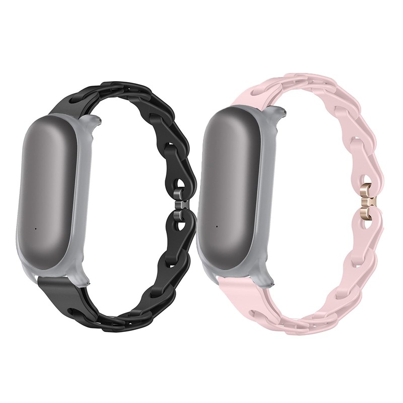 Lamshaw Compatible with Plaud NotePin Bands, Elastic Silicone Hollowed Out Replacement Straps Compatible for Plaud NotePin Voice Recorder (2 Pack-Black+Pink)
