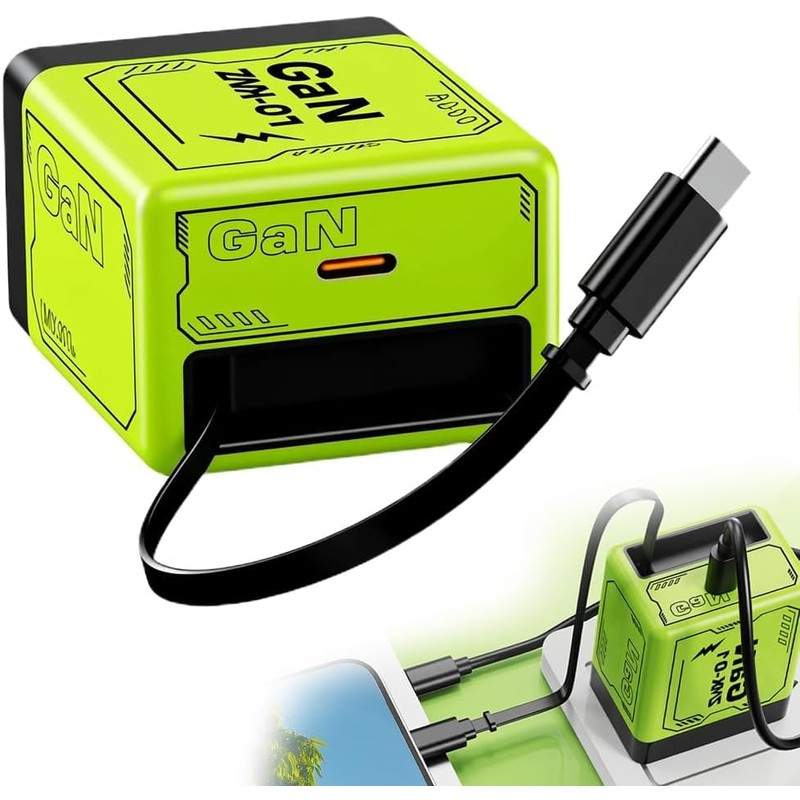 Compatible with 120W Fast Charger, Fast Module with Type-C Cable, Retractable Wall, All in One Foldable Plug - Green