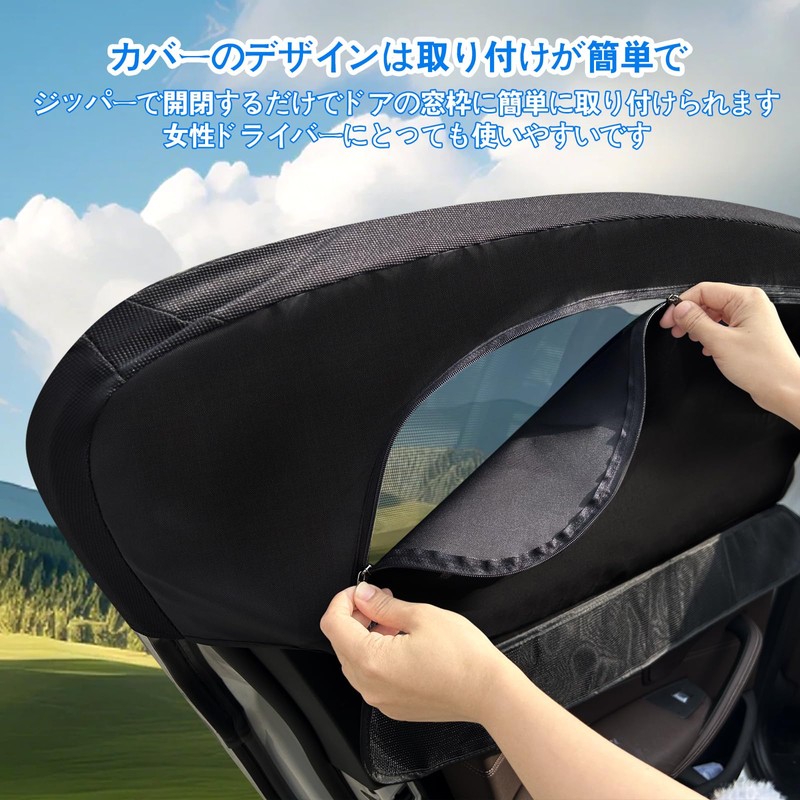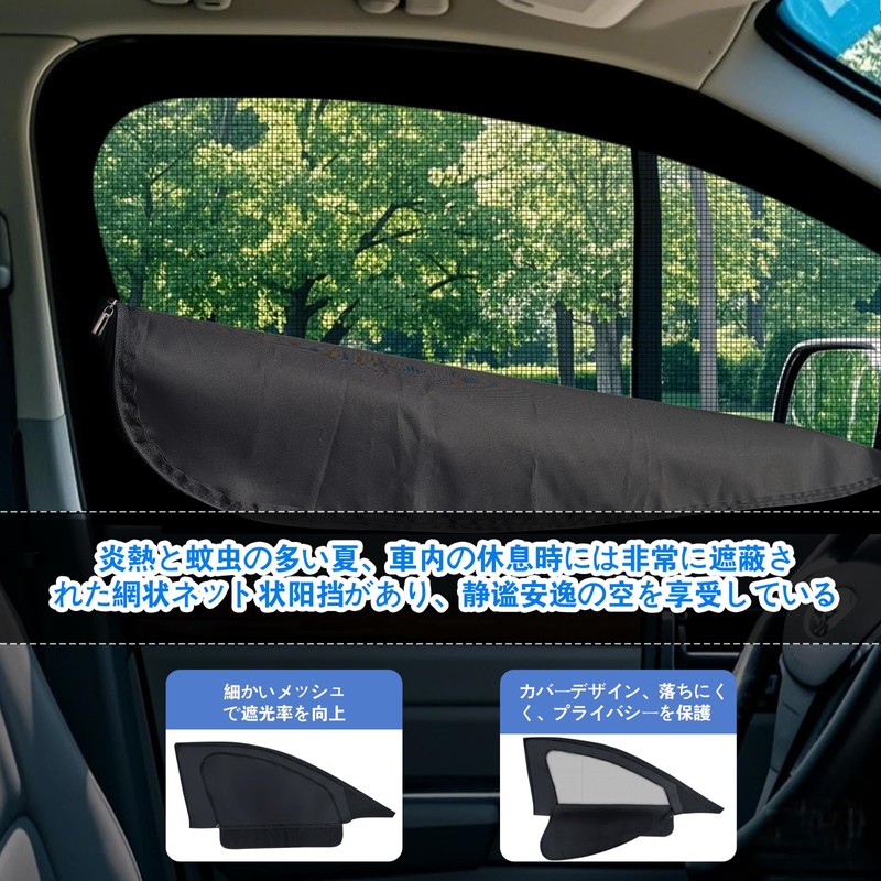 - (New Model Car Window Insect Repellent Net) This car window net combines the 2-in-1 functionality of car sun protection and insects. The base of the insect repelling net has been added to the black sunscreen and zipper, and the double layer construction. It has good ventilation and has excellent insect repellency and improved light blocking effect. Greatly blocks out heat and UV rays from outside, and when parked with a car cooler, you can maintain a more efficient and comfortable interior environment. At night, you can unzip the inner sunscreen net, open the car window and enjoy the cool breeze while staying comfortable in the car