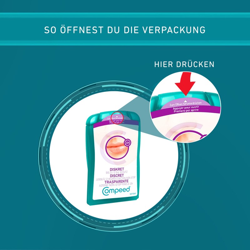 - Für eine schnelle Wundheilung: Ein Herpesbläschen-Patch von Compeed fördert die Wundheilung und verringert nachweislich die Krustenbildung