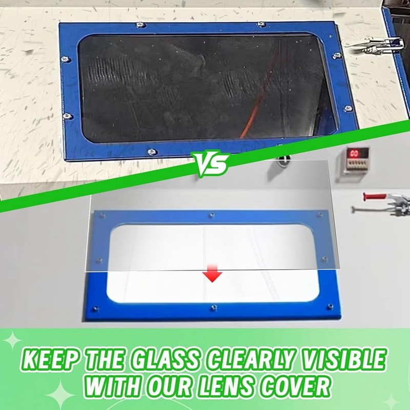 - Standard size: the glass protector for sandblasting cabin is about 58.5 x 28 cm and 0.01/0.2 mm. The blast cabin lens covers are suitable for most machine types without the need for cutting. This lens protector for sandblasting machines can easily cover the lens of the sandblasting machine and provides reliable protection for your lens.