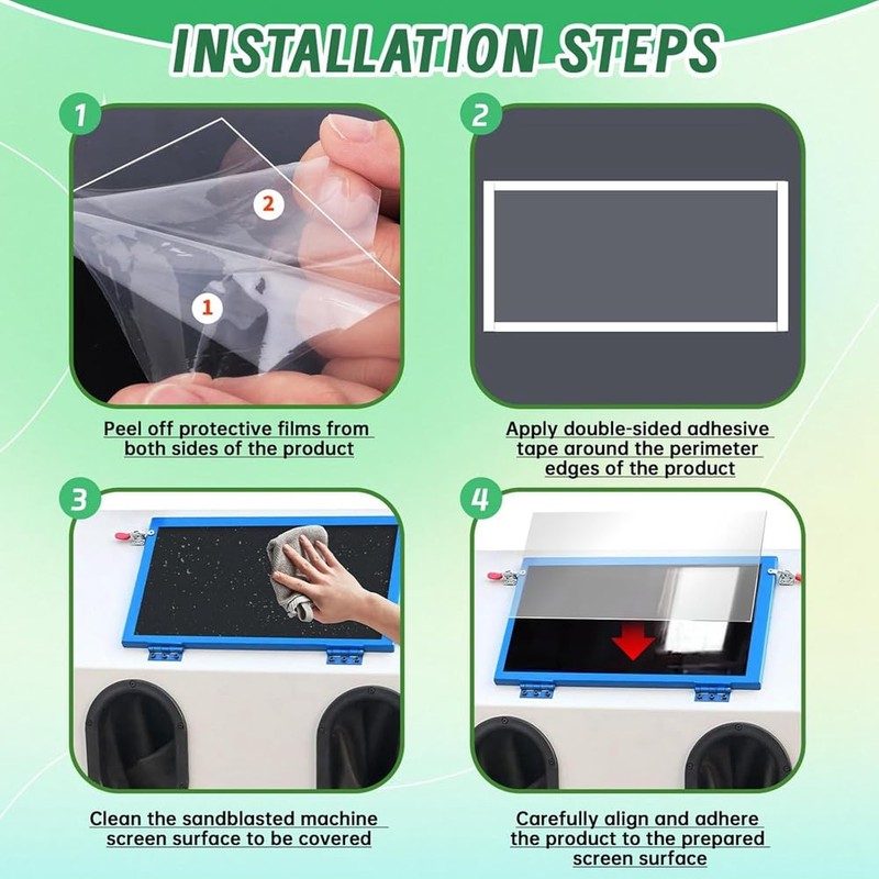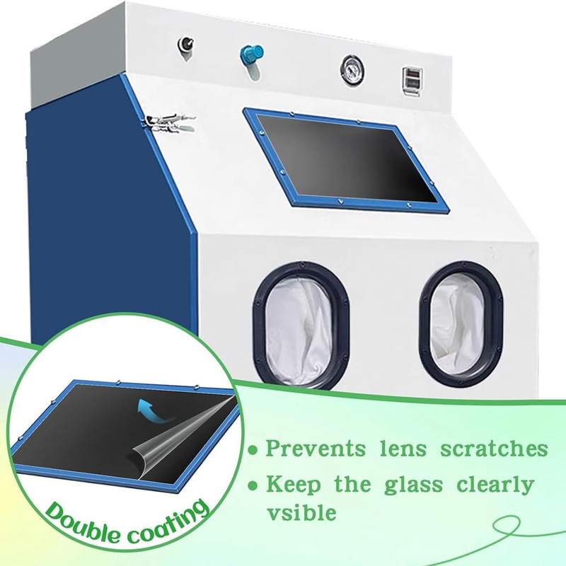 - MULTI-PURPOSE The polyester sandblasting film is extremely practical and protects the lens of your sandblasting cabin from damage. It is therefore suitable for most blasting equipment, sandblasting systems and blast cabins. This lens protector for your sandblasting cabin provides maximum protection.